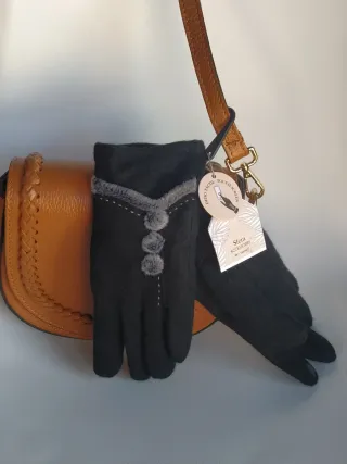 Guantes negros Sfera pompón piel