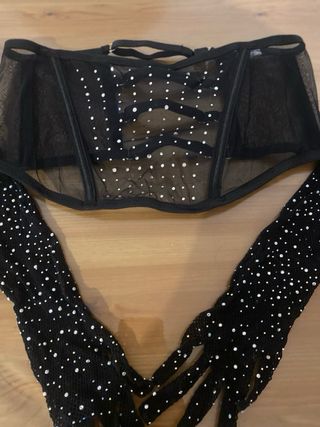 Conjunto Yamamay Corsé y Guantes Brillantes