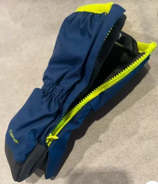 Guantes de nieve para niño de la marca Wedze. - Color azul con detalles en amarillo. - Cierre de velcro para un ajuste seguro. - Diseño tipo manopla para mayor calidez.