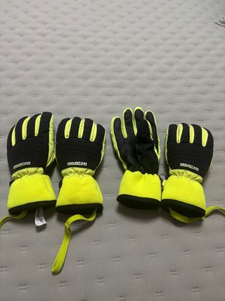Par de guantes de nieve para niños, ideales para mantener las manos calientes en climas fríos. - Diseño con puño elástico. - Cierre de velcro en la muñeca. - Correa de sujeción. - Marca: Mountain.
