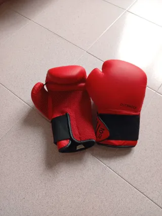 Guantes de boxeo para niños, perfectos para iniciarse en el deporte. - Marca: Outshock - Peso: 10 oz - Cierre de velcro ajustable - Diseño con rayas rojas