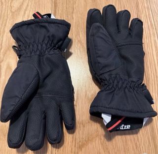 Guantes de esquí para niños, perfectos para mantener las manos calientes en la nieve. Para niños de 8-12 años. Mano derecha algo desgastada. - Diseño en negro y blanco. - Cierre elástico en la muñeca.