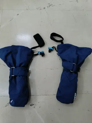 Manoplas para niño en color azul. - Cierre ajustable en la muñeca. - Cuerda de seguridad con clip. - Marca visible en el lateral.