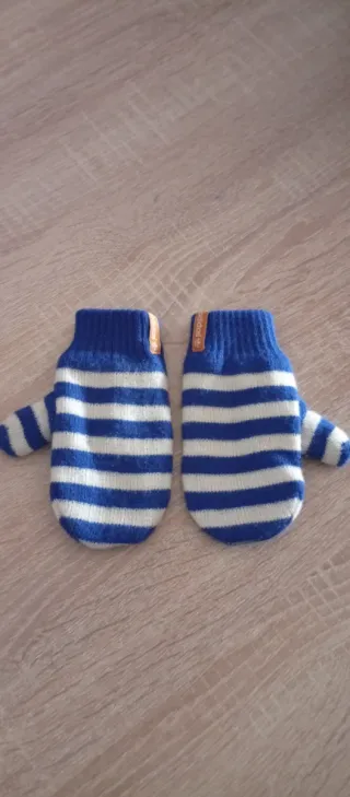 Conjunto de manoplas de punto para niño con un diseño de rayas. - Diseño de rayas azules y blancas. - Puño elástico para un mejor ajuste.
