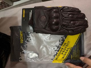 Guantes de piel para moto de la marca SUOMY. - Diseño perforado para mayor ventilación. - Detalles en amarillo. - Modelo SU-13. Talla M