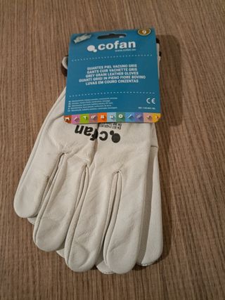 Guantes de piel de vacuno de la marca Cofan. - Material: Piel de vacuno de grano. - Color: Gris. - Talla 9. - 1 Unidad 2€. 3 Unidades 5€