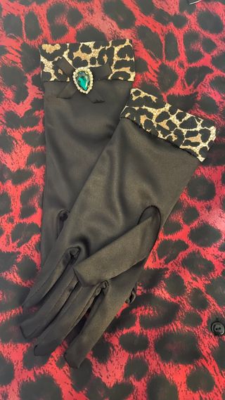 Guantes de seda con puño printa animal, acabado con lazo de grogré y boton joya Hechos a mano, unicos y exclusivos!!