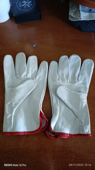 Completamente Nuevos 5 Pares de guantes--------11 euros 10 Pares de guantes-------20 euros Ideal para tareas industriales, bricolaje, jardinería o trabajos manuales exigentes. Fabricados con materiales resistentes y certificados bajo normas europeas EN388 y EN407, ofrecen protección contra riesgos mecánicos y térmicos. Diseño ergonómico con ajuste cómodo, excelente agarre y durabilidad. Están clasificados como CAT II, lo que garantiza un nivel intermedio de protección para uso profesional. ✅ Talla: 9. Disponemos también de otras tallas ✅ Certificados EN388 y EN407 ✅ Protección contra cortes, abrasión, calor y más