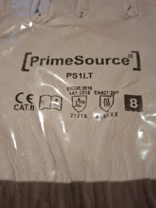 Lote de tres pares de guantes de trabajo PrimeSource. - Talla 8. - Material de cuero. - Puño elástico.