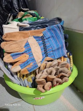 Lote de guantes de trabajo de diferentes tipos y colores.