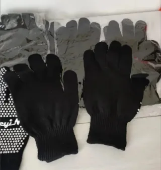 Lote de guantes de trabajo en dos colores. - Guantes de color negro Talla L 9 unidades Talla M 8 unidades - Guantes de látex Talla L 13 paquetes Talla M 10 paquetes Se venden todos juntos