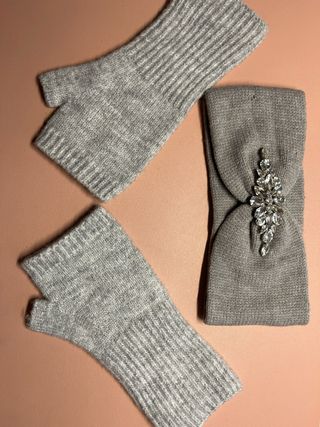 Conjunto de invierno en tono gris, elegante y combinable. Incluye: 🧤 Guantes sin dedos de punto, cómodos y prácticos 🎀 Diadema/banda a juego con detalle joya brillante ✔️ Color gris neutro ✔️ Suaves y calentitos ✔️ Ideales para diario, trabajo o regalo Estado muy bueno. Sin marca. Se venden juntos.
