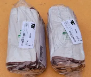 Pedido minimo 11 euros-----5 unidades. OFERTA 20 euros----10 unidades Guantes Protección mecánica. Guante Piel Flor Vacuno Natural Guantes de trabajo de cuero, talla 9 Disponemos de más tallas Ideales para trabajos manuales y de jardineria. - Material resistente y duradero. - Marca: TB - Color: Blanco y marrón - Modelo: 160IBSZ - Lote: 230357