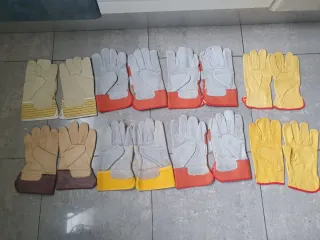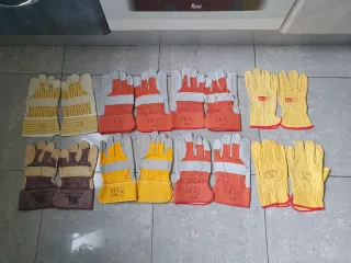 Lote de guantes de trabajo, combinando cuero y tela para mayor durabilidad y comodidad. - Materiales mixtos para protección. - Diseño ergonómico para ajuste. - Variedad de estilos en el lote.
