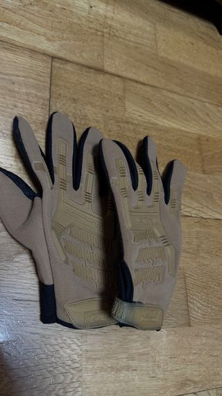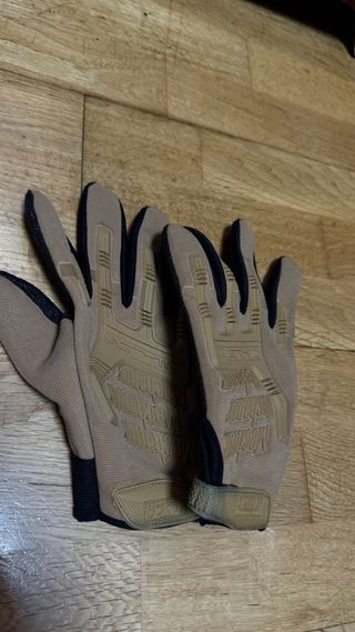 Guantes de protección en color beige y negro, ideales para airsoft o trabajos que requieran protección en las manos. - Diseño ergonómico para un ajuste cómodo. - Materiales resistentes para mayor durabilidad. - Cierre de velcro ajustable en la muñeca.