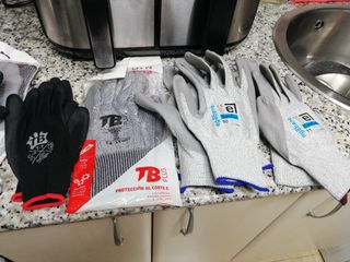 Bolsas guantes de trabajo. Son dos bolsas, Ideales para no cortarte y no hacerte heridas. Todas las tallas desde la 8 a la 11.vendo todos juntos. Precio por todos.Atiendo wasap.690912394