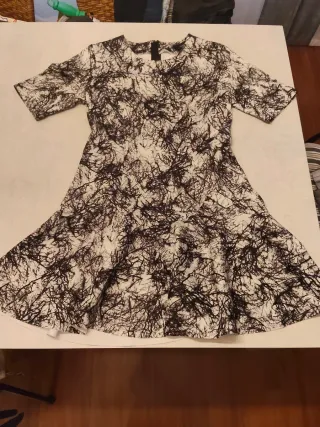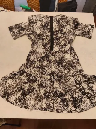 Vestido de mujer con estampado abstracto.Vestido de la marca Hakei de neopreno en color negro y blanco. Queda como un guante . Me lo he puesto en dos ocasiones es súper cómodo y elegante . - Material: Neopreno. - Diseño de manga corta. - Corte acampanado.