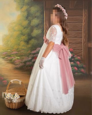 Vestido de Comunión Blanco y Rosa