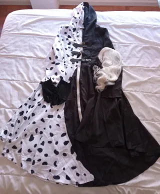 Vendo disfraz completo de Cruella de Vil, sin estrenar, ideal para Carnaval, Halloween, fiestas temáticas. 🖤🤍 Incluye: Vestido largo bicolor blanco y negro Guantes negros Peluca bicolor blanco/negro ✔️ Diseño elegante y muy reconocible ✔️ Tejido ligero y cómodo ✔️ Cierre frontal con detalles decorativos ✔️ Muy favorecedor y llamativo 📏 Medidas: 40 x 90 cm Soy de Canarias y wallapop no hace envíos Canarias a Península. Si te interesa te lo puedo enviar x Correos certificado con seguimiento del envío fuera plataforma. #cruella #cruelladevil #disfrazcruella #disfraz #disfrazmujer #disfrazcompleto #halloween #carnaval #fiestaste