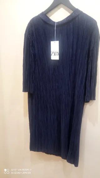 Vestido azul plisado Zara talla única