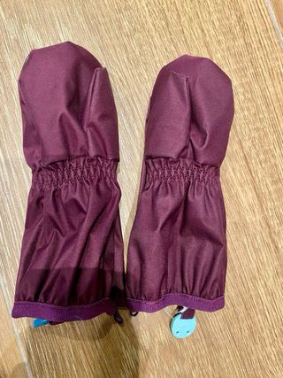 Manoplas para bebé de la marca Decathlon, ideales para mantener sus manos abrigadas. - Talla 12-18 meses. - Cierre con clip para unirlas.