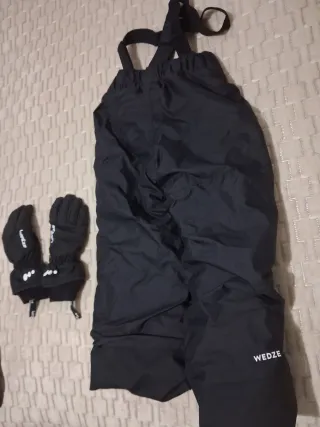 Conjunto de pantalón de nieve con tirantes y guantes. Pantalón talla 5 años Guantes talla 6 años De un sólo uso.