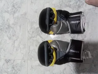 Par de guantes para MMA con un diseño llamativo. - Exterior en color negro. - Interior en color rojo. - Diseño abierto en los dedos. vendo por qué no es mi talla