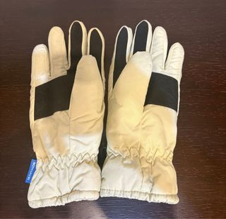 Guantes de esquí en talla M. Diseñados para mantener tus manos abrigadas y protegidas, son de color blanco roto - Material exterior resistente. - Forro interior suave. - Cierre ajustable en la muñeca.