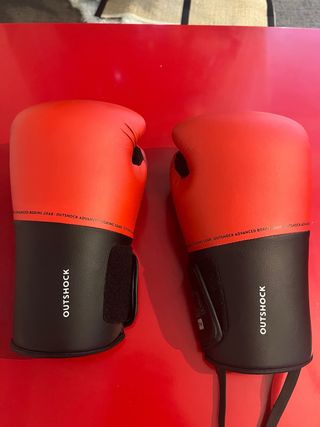 Par de guantes de boxeo de la marca Outshock.(decathlon) - Diseño en color rojo y negro. - Cierre de velcro ajustable.