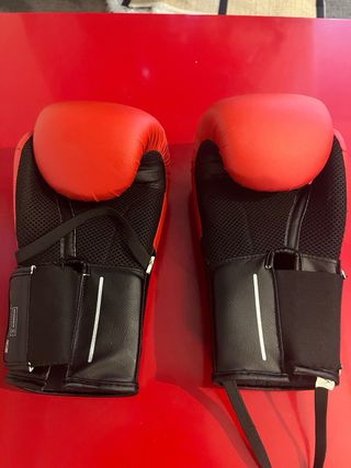Par de guantes de boxeo Decathlon de 8 oz. - Color rojo y negro. - Cierre de velcro. * * También podes consultar por lote u otros artículos de la última foto.