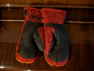 Conjunto de guantes de esquí, un par negro y otro rojo. Están en buen estado los de esquí no han sido prácticamente usados. - Guantes negros tipo manopla, marca: wedze décathlon. Tienen un letrero donde puedes poner el nombre. - Guantes rojos de dedos, de una tienda local.