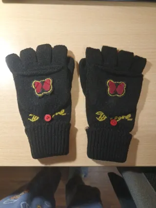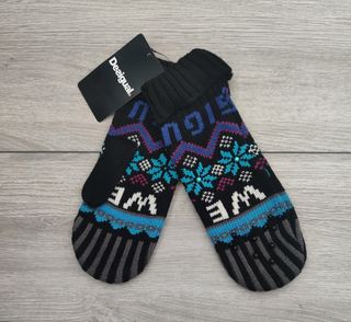 Guantes manoplas de punto de Desigual, con mariposas y el nombre de la marca cosido, son suaves y calentitos. Vale para toda talla de mano, son elásticos