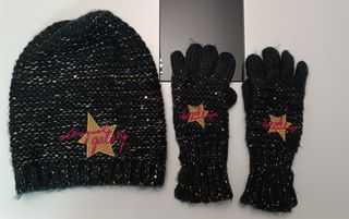 Conjunto de gorro y guantes de la marca Desigual. - Gorro de punto con mensaje bordado. - Guantes a juego.