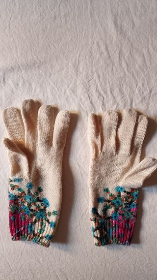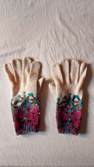 Manoplas para el invierno de mujer rellenas de borreguillo. Muy calientes. Talla XS/S. Marca: Desigual. Color: marrón clarito con estampado multicolor de flores. Precio: 5€. Se hacen envíos. Venta en persona en Zaragoza.