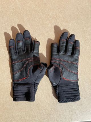 Vendo estos guantes de náutica de la marca Tribord en color negro con detalles en rojo. Son súper prácticos porque dejan libres los dedos pulgar e índice, así que puedes hacer nudos o usar el móvil sin quitártelos. Lo mejor de estos guantes: - Protegen mucho las palmas de las manos al tirar de cuerdas. - El material es elástico y seca rápido. - Muy buen agarre. - Estilo deportivo y duradero. Tiene alguna marca de uso pero estan en buen estado