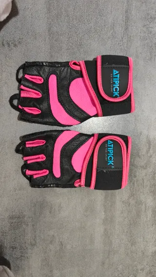 Par de guantes de gimnasio ATIPICK. - Diseño sin dedos. - Cierre de velcro ajustable. - Detalle de costuras en rosa. Talla M Consulta MD. No mareantes. Realmente interesados. No me hagas perder el tiempo. Wallapop envíos.