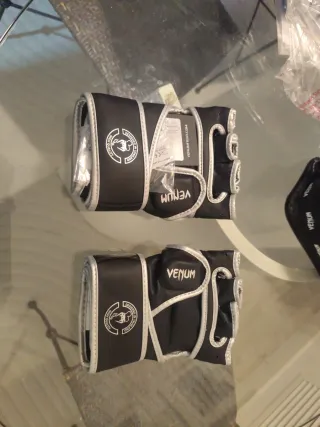 Par de guantes Venum en color negro y plateado,están sin estrenar.talla M - Diseño con logo Venum. - Cierre de velcro. - Costuras reforzadas.