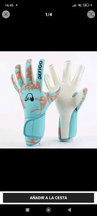 Guantes de portero con un diseño llamativo. - Combinación de colores azul y naranja. - Cierre de velcro ajustable en la muñeca. - Talla 10 - Se venden por equivocación de talla
