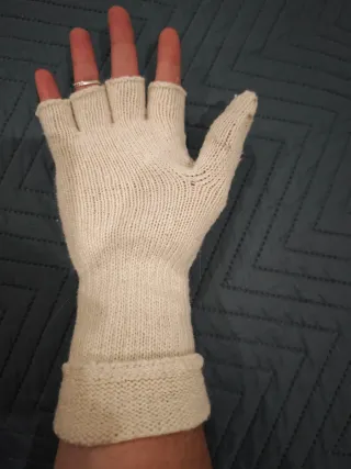 Guantes de lana color crema, perfectos para mantener tus manos abrigadas. Son convertibles, permitiendo usar los dedos. - Material: Lana. - Color: Crema. - Diseño convertible.