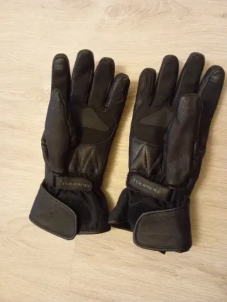 Guantes versátiles para moto o actividades en la nieve. Diseñados para ofrecer protección y comodidad. - Cierre ajustable en la muñeca. - Bolsillos frontales. - Detalle de marca en la parte superior. - Tiene una zona en el dedo reparada/cosida. - Posee un agujero/rotura en una zona de la goma, como se puede ver en las fotos. -Tiene bolsillitos para pastillas para calentar las manos. Son una talla M pero son grandecitos yo creo que son más bien L