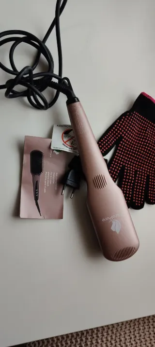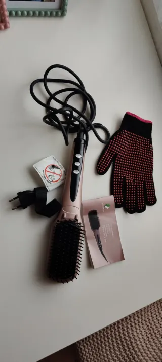 Cepillo alisador para el cabello, diseñado para facilitar el peinado. - Incluye guante protector. - Incluye cable de alimentación con enchufe. - Incluye manual de instrucciones.