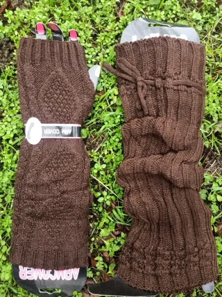 Guantes y calentadores de punto marrón