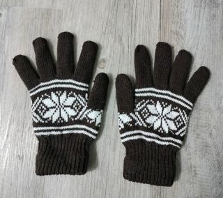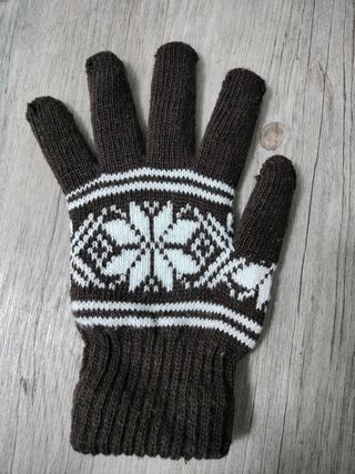 Guantes de lana en color marrón con dibujo en blanco. Forrados en el interior con tejido muy agradable En muy buen estado