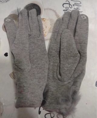 Guantes de talla S con un diseño elegante. - Detalle de lazo en la muñeca. - Adorno de pelo sintético en el puño.