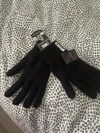 Par de guantes de piel negros, con un relleno muy muy calentito y muy suaves, aunque la etiqueta esta cortada porque molestaba, son maximo dutty, geniales para estos meses de frio y lluvia, al no calar por esta,usados un par de veces estan nuevos - Material: Piel.