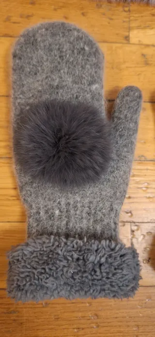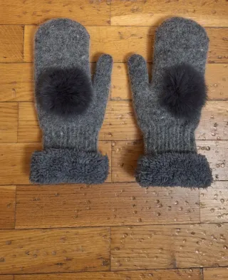 Manoplas de invierno grises con pompón talla S