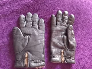 Guantes de colección estilo vintage, con un diseño tejido a crochet y detalles en cuero. - Diseño tejido a crochet. - Detalles en cuero. - Tiras de color azul y rosa.