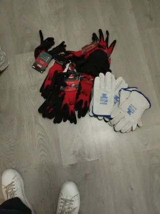 Guantes de trabajo,hay 10 de Rojo y hay 4 de pie