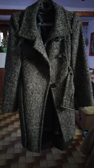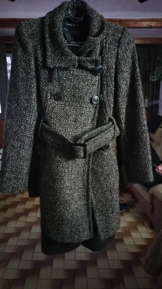 Abrigo de la marca Zara con un diseño tejido en varios tonos. - Diseño tejido. - Cierre de botón. - Bolsillos frontales.