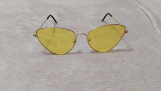 Gafas de sol con un diseño moderno y llamativo. - NO HOMOLOGADAS - Montura fina en tono dorado. - Lentes de color amarillo vibrante. - Estilo cat-eye.